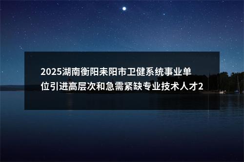 原标题:2025年耒阳市卫健系统事业单位引进高层次和急需紧缺专业技术人才公告