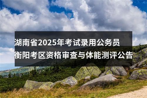 根据《湖南省2025年考试录用公务员公告》《湖南省2025年考试录用公务员资格审查与体能测评公告》和考录工作进度安排,即将开展资格审查与体能测评。现就衡阳考区资格审查与体能测评有关要求及考录工作后续相关安排公告如下: