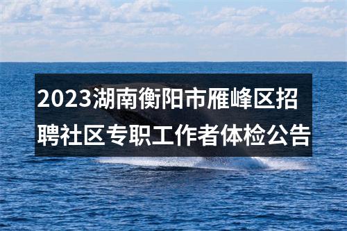 根据《衡阳市雁峰区2023年公开招聘社区专职工作者简章》要求,现就聘用体检工作有关事项公告如下: